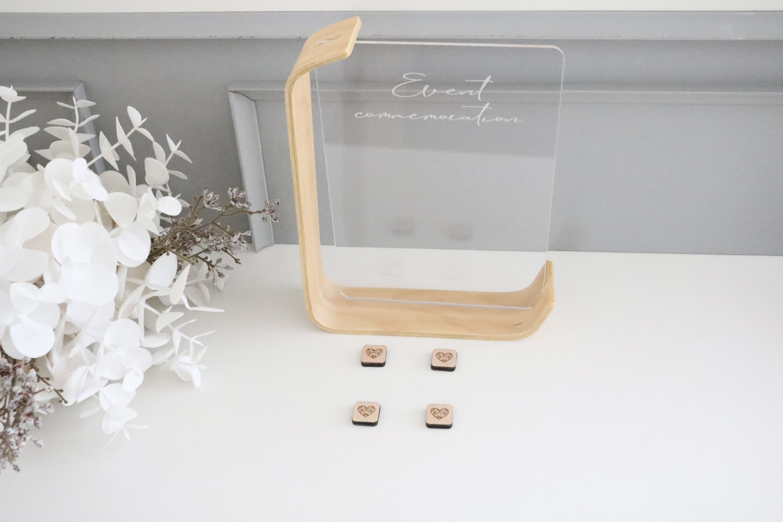パーツ構造 表面 表面 裏面 裏面 側面 側面 4層構造になっており、木製MDFボードとメープル天然木を使用。約6mmの厚みがございます。 背面には0.45mmのメープルの天然木を使用。はじめはフェルトや布等で試作をしておりましたが、フェルトは厚みがあるため磁力が落ちてしまうのと、布では使用している間に擦れて破れてしまう可能性があるため、安全性を考慮し天然木を使用する事にしました。そのため、どうしてもコスト面での単価アップが避けられず、少しお高めになってしまっておりますが、上記理由によりご理解いただければと思います。 パーツ留め磁石 表面 表面 表面 表面 アクリル板の裏から1.5㎝角の磁石でパーツを固定します。表側にはハートのマーク。裏面はパーツ同様木材のみになっております。※大人の方を対象にした商品ですので、小さなお子様がおられるご家庭は、お子様の誤飲には十分ご注意ください。